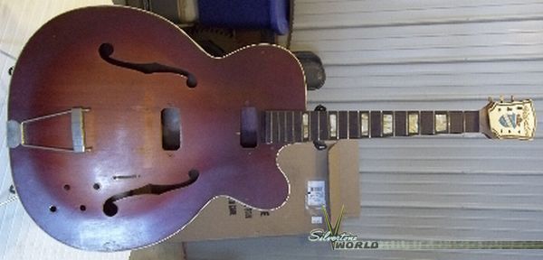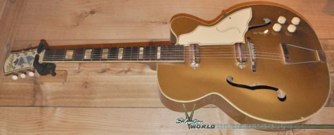 electric 'Aristocrat' look: big, wide body, fanciful pickguard, regal crest