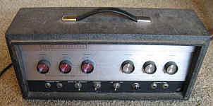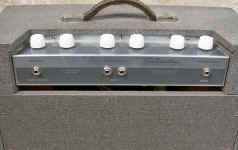 how we don't see many of these late 50s era amps when along come three! They spanned those difficult years from 1959 'til 1961; rock and roll had made a big splash, Elvis was in the Army, Sputnik had ushered in the Space Age, and the '60s hadn't really cranked up quite yet. These amps were available with a Jetsons kinda feel after the decidedly conservative tweed/alligator "'50s Phase 3" amps. This angles-and-open-space aesthetic that was shared by every amp in the line would give way to the "TV-shaped" series that came right after this, most perfectly represented (to me) in the 1472/82, with its vertical front face control panel.