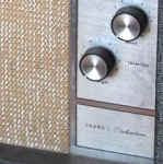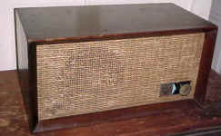 Here's a little something I've never seen before; it's the Silvertone Reverberation Chamber, Model #9614. Dunno who made it, when they made it or when they sold this odd little puppy, but here it is. Two leads stringing out the back, there is a speaker in the unit, and what looks like one lonely control. I'm guessing the brown lead is the AC, and the white lead is either a line or speaker-level input. It consumes 50 watts according to the back label, so I'm reckoning there's a low-power mono audio tube amp behind that Masonite panel, hooked up to a reverb tank and then into a 6-inch or so speaker. I guess you used this unit to give your mono records a little 'ambience.' The unit is untested, and I'd absolutely love to hear what it sounds like.