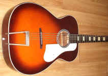 658 Kay FHAC w/ C  VG $199 Clean, light wear, striping looks good, pickguard present, some fretboard grunge, small logo, block markers indicate pre-'66 model.